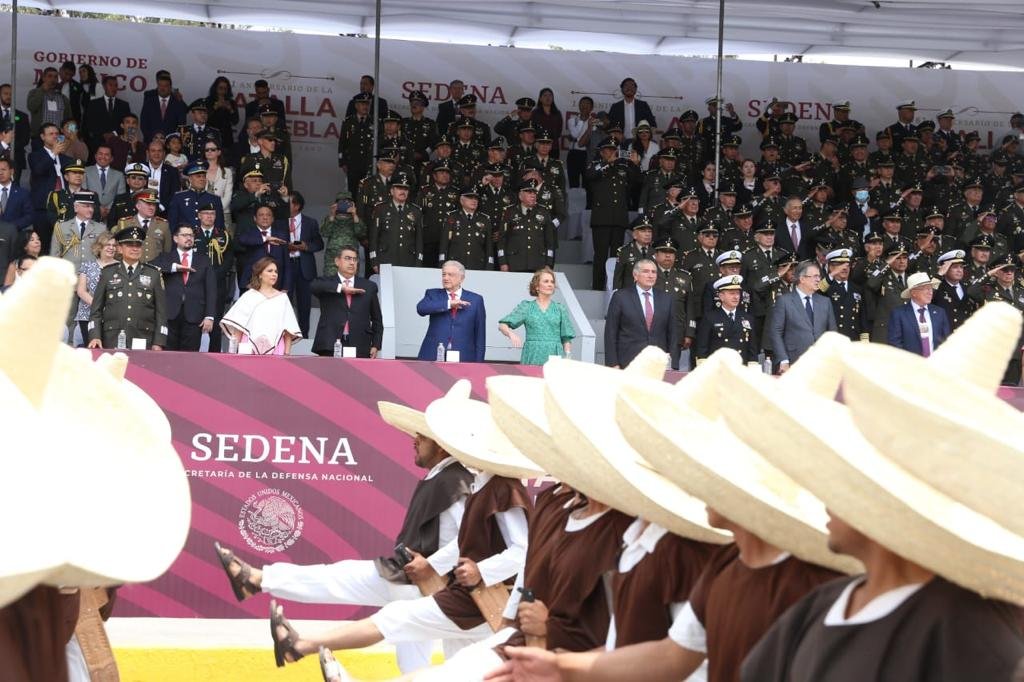 CIUDAD DE PUEBLA, Pue. – Para refrendar el orgullo de ser poblano y la importancia de la entidad en la historia del país, el presidente de México, Andrés Manuel López Obrador y el gobernador Sergio Salomón Céspedes Peregrina presidieron el Desfile Cívico-Militar por el 161 Aniversario de la Batalla de Puebla, en el que participaron elementos de las Fuerzas Armadas e integrantes de instituciones educativas acompañados por carros alegóricos y sobrevuelo de aviones militares.