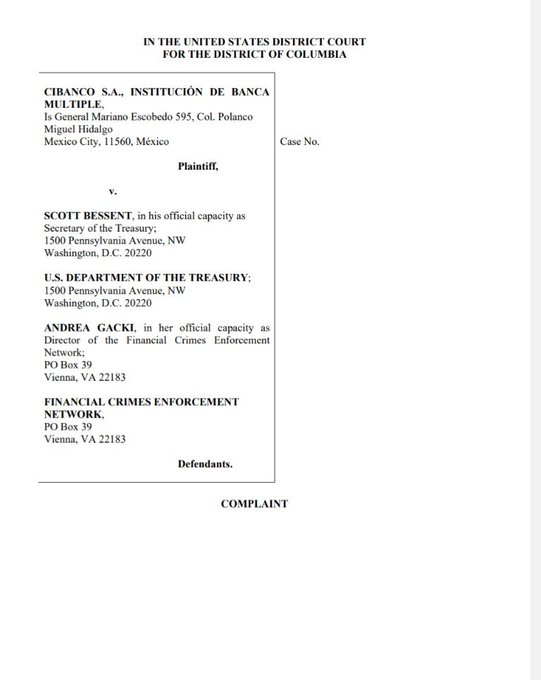 El Departamento del Tesoro de Estados Unidos, a través de la red de control financiero (FinCEN), incluyó a CIBanco, Intercam y Vector en una lista negra al acusarlos de facilitar operaciones ligadas al narcotráfico. La medida prohíbe a cualquier institución estadounidense mantener relaciones con ellos y entrará en vigor el 4 de septiembre de 2025.