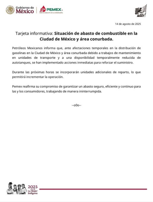 Pemex anunció que sumará más unidades de reparto para agilizar la entrega de gasolina en las zonas afectadas. En Chiapas, el desbloqueo de la TAD permitió retomar el suministro a las regiones Soconusco, Costa y Sierra Mariscal. En Nuevo León y la CDMX, se espera que el servicio se normalice en los próximos días.