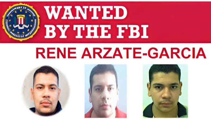 El FBI indicó que René Arzate García podría encontrarse en territorio mexicano. Es considerado un objetivo prioritario por su presunta participación en el envío de drogas y por los cargos relacionados con narcoterrorismo.