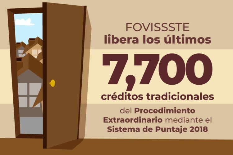 El Fondo de la Vivienda del ISSSTE (FOVISSSTE) liberó los últimos 7 mil 700 financiamientos, y con ello finaliza el Procedimiento Extraordinario para el Otorgamiento de Créditos Tradicionales, mediante el Sistema de Puntaje 2018, en el que se atendió a la totalidad de solicitudes inscritas.