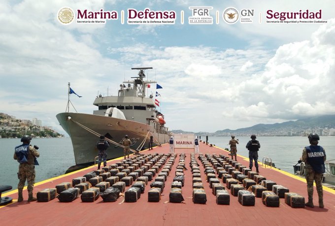 Durante labores de patrullaje marítimo, elementos de la Armada de México detectaron una embarcación de bajo perfil en la que se localizaron 180 bultos con un polvo blanco similar a la cocaína. El peso total de la carga se estimó en 3.5 toneladas.