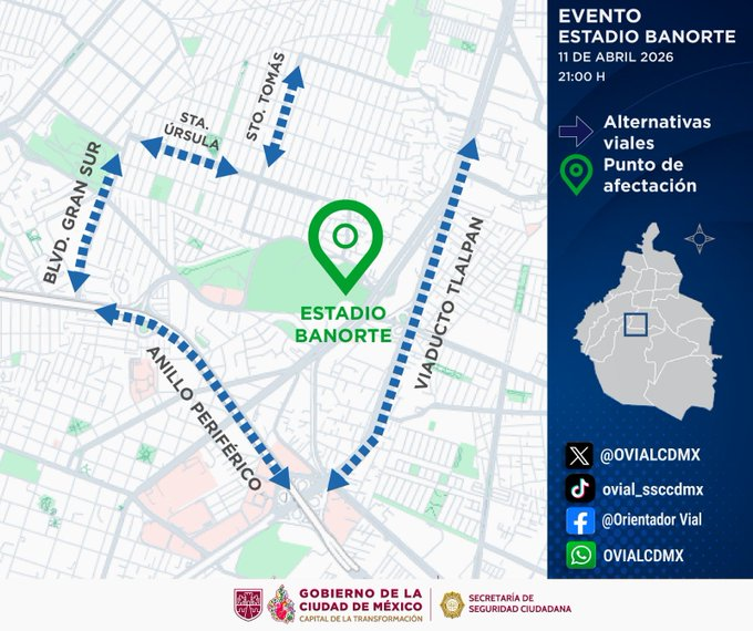 Adicionalmente, se habilitarán rutas peatonales seguras y se realizarán ajustes en el transporte habitual, incluyendo el cierre del CETRAM Huipulco y la suspensión del servicio en la estación Estadio del Tren Ligero.